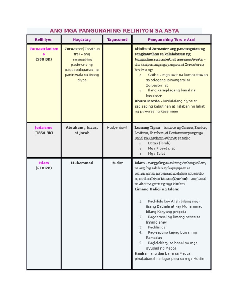 Ang Mga Pangunahing Relihiyon Sa Asya Pdf